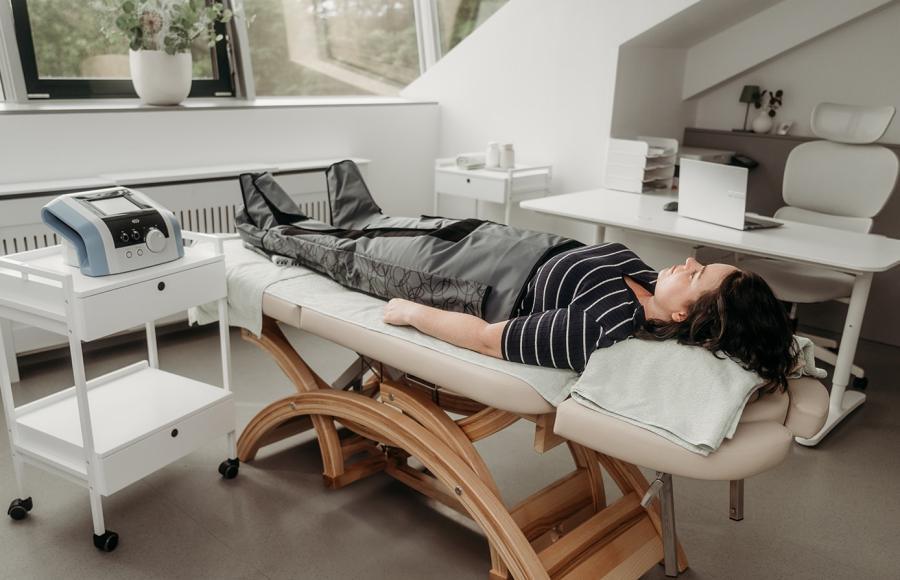 Dabei üben luftgefüllte Manschetten sanften, rhythmischen Druck auf die betroffenen Regionen aus.. Dies fördert den Lymphfluss gezielt und hilft, Schwellungen zu reduzieren und das Gewebe zu entlasten.